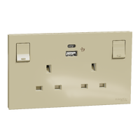 SWITCHES AND SOCKETS- SCHNEIDER- Double switched socket with USB charger, 13A, 21W, type A+C