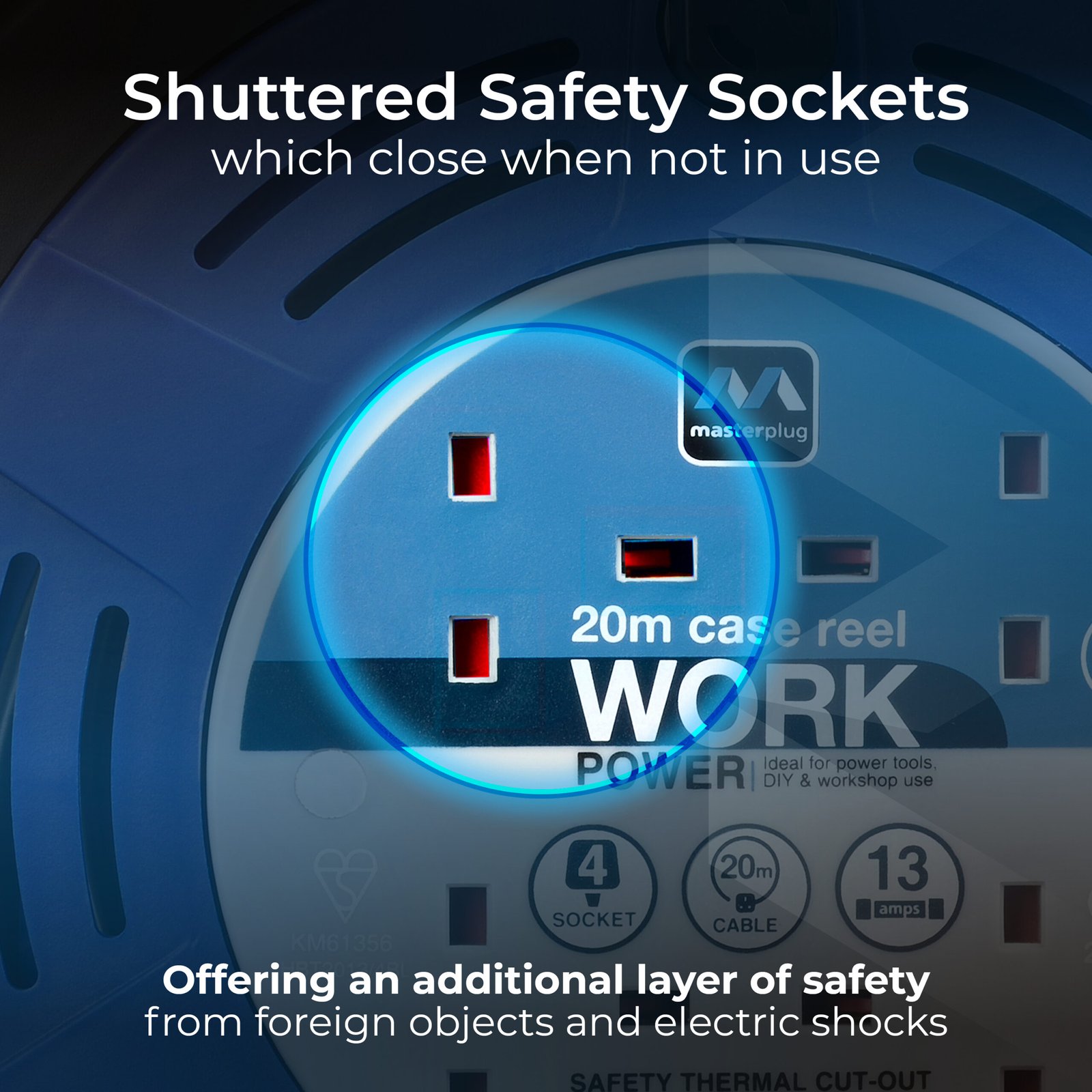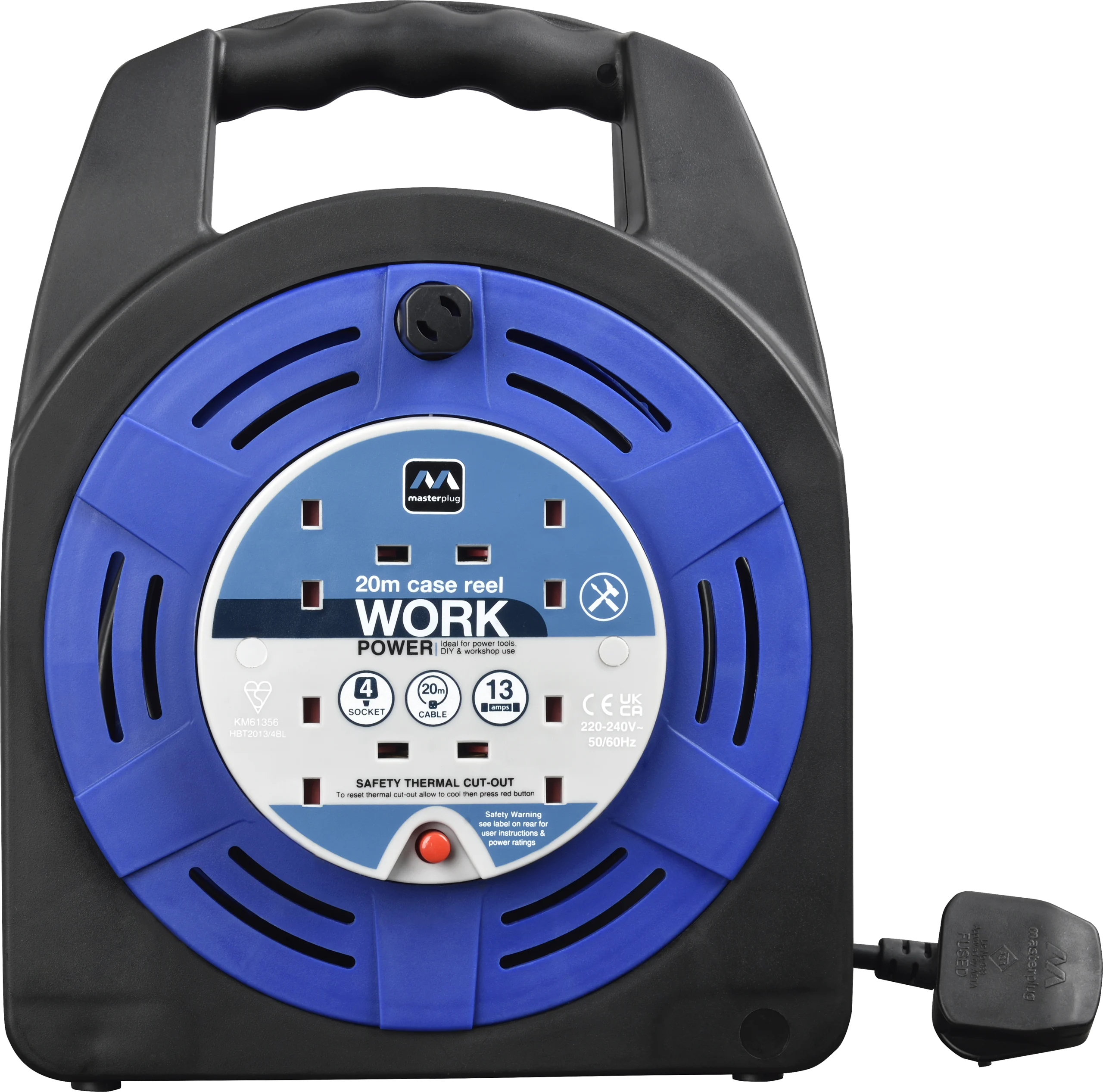 4 socket 20 mtr universal case reel, PART NO: HBT2013/4UNBL-ME