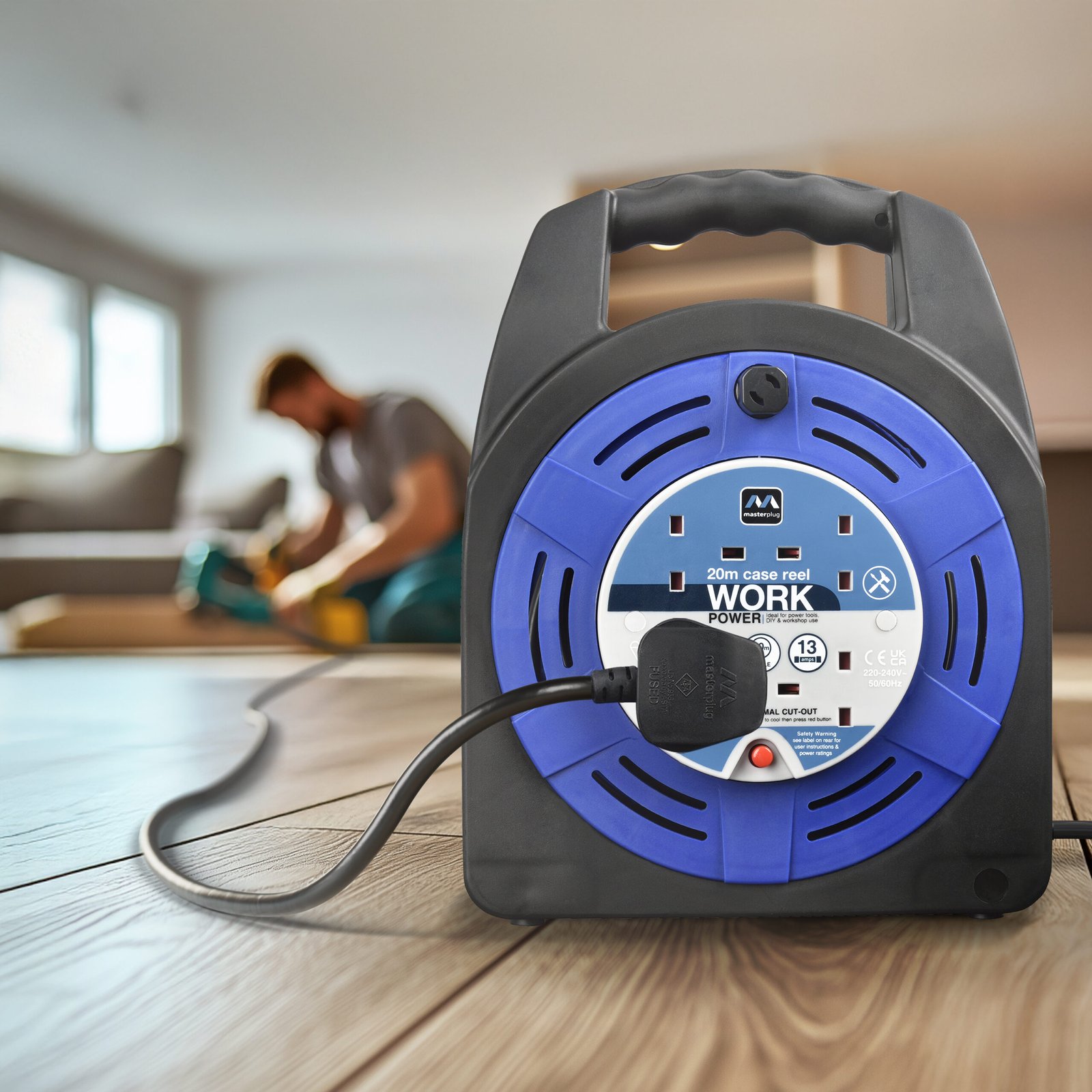 Universal Four Socket 20 Meter Case Reel Extension Lead