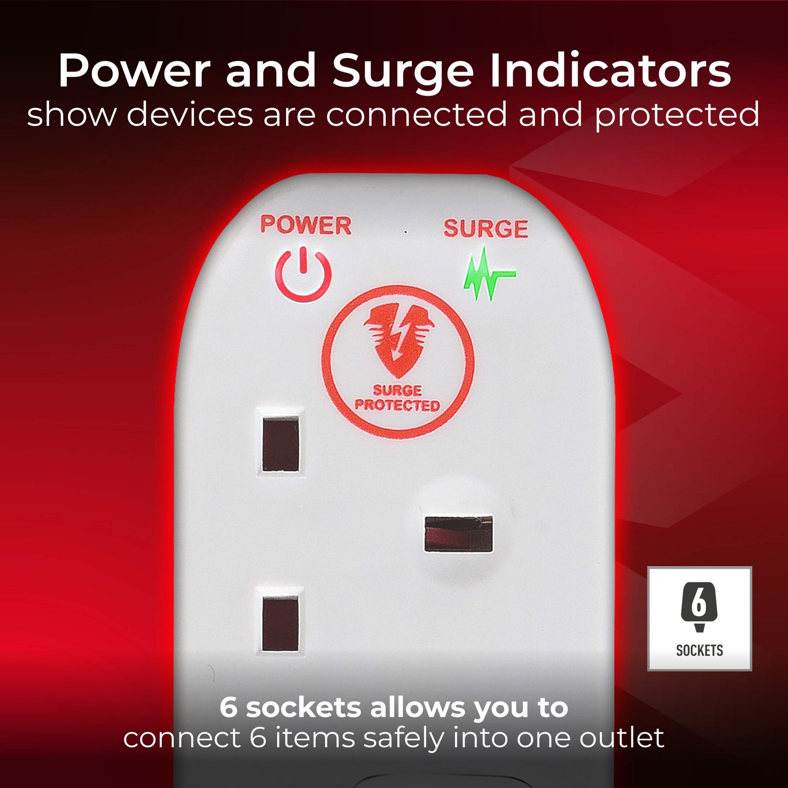 13A 6 socket surge protected trailing socket with 2 mtr cable white, IP20