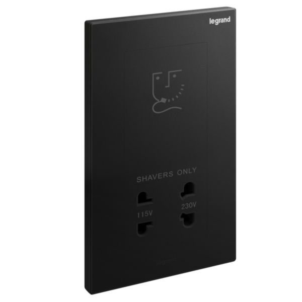 2 gangs shaver socket outlet – 2 outputs 110 and 230 volts, IP40