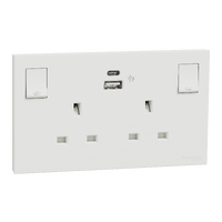 SWITCHES AND SOCKETS- SCHNEIDER- Double switched socket with USB charger, 13A, 21W, type A+C